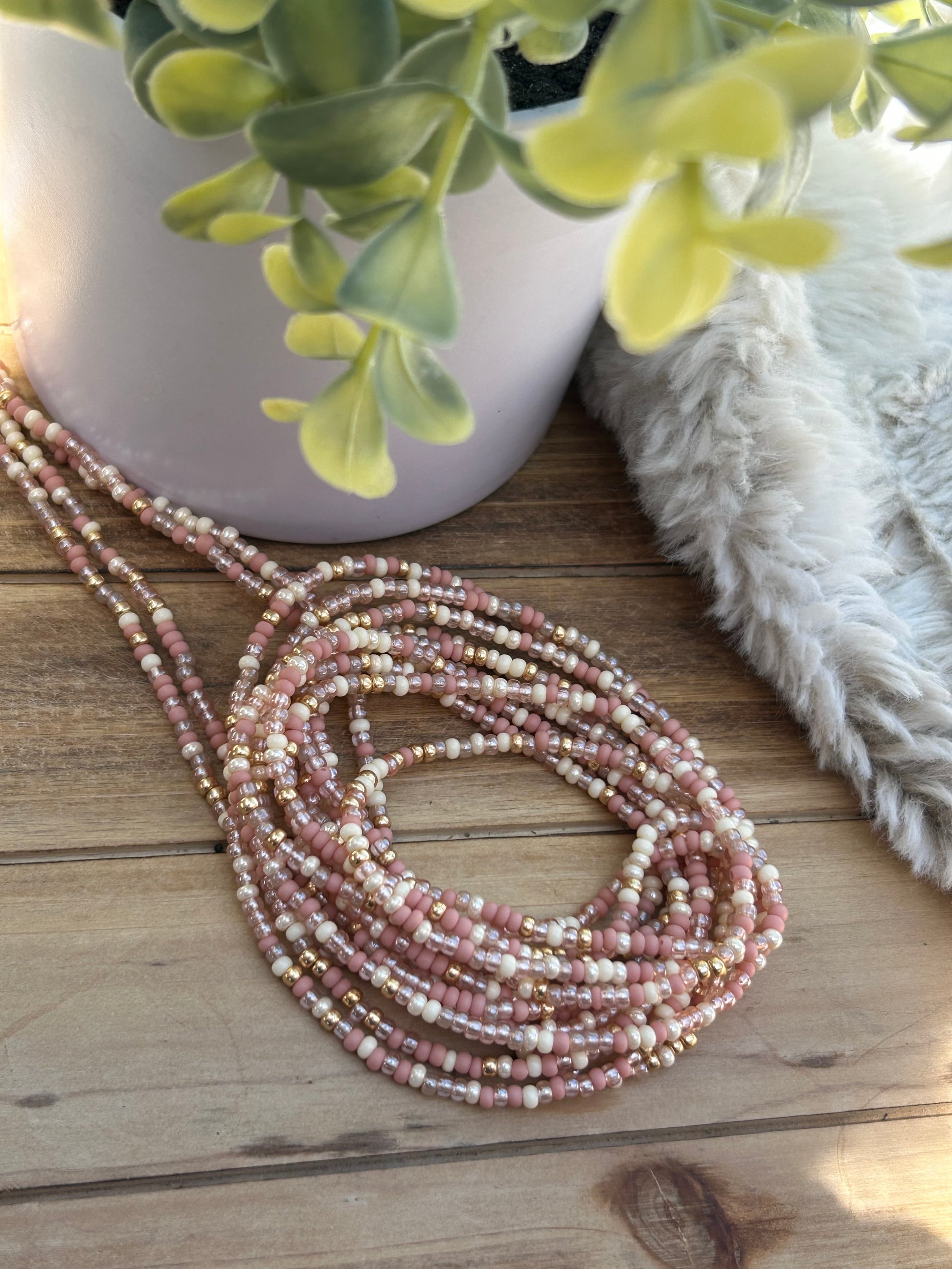 Beautiful hand blended mix of pink neutrals and specks of gold glass seed beads.