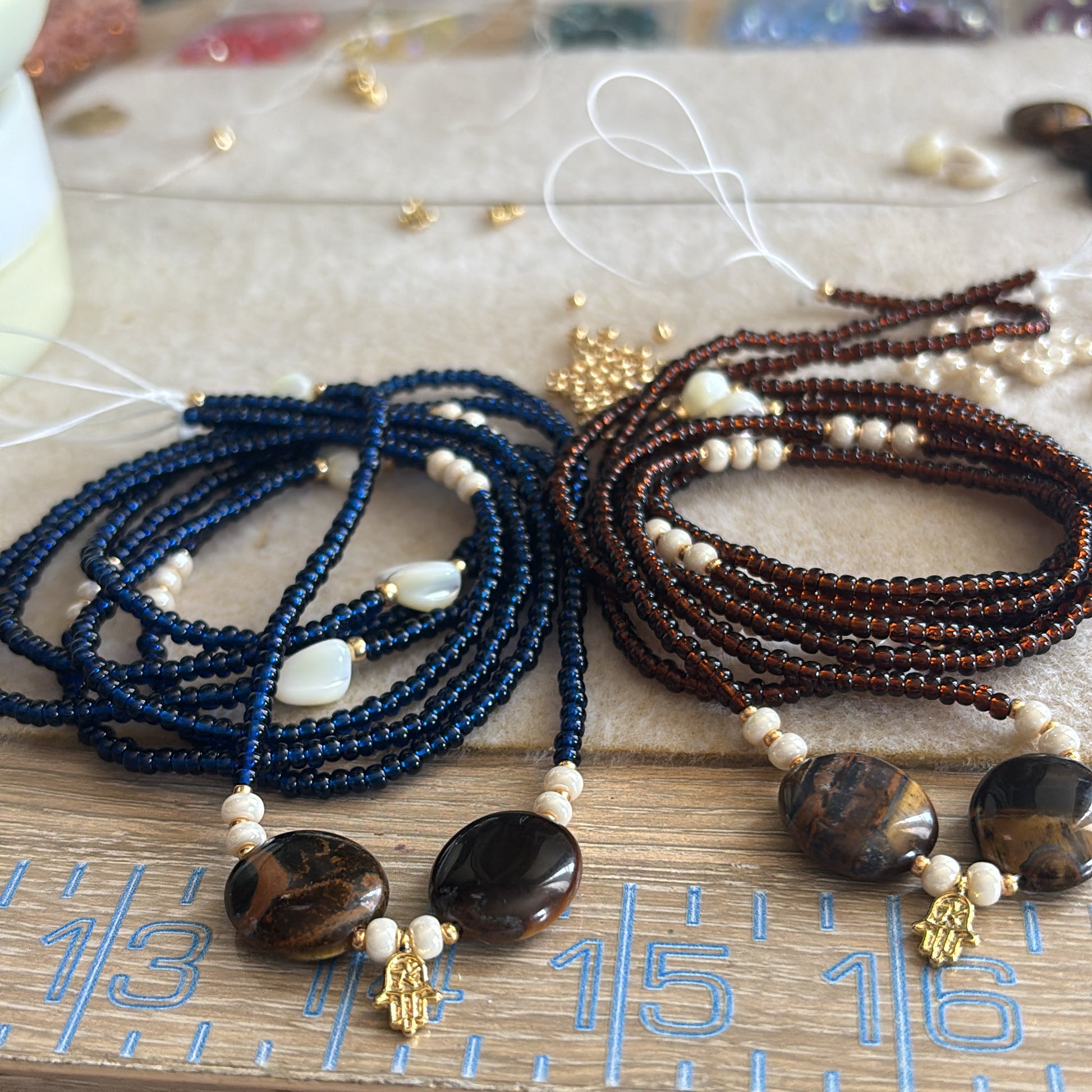 Standard 55" tie on waist bead, for larger size leave a note at checkout. Up to 65" at no additional charge.