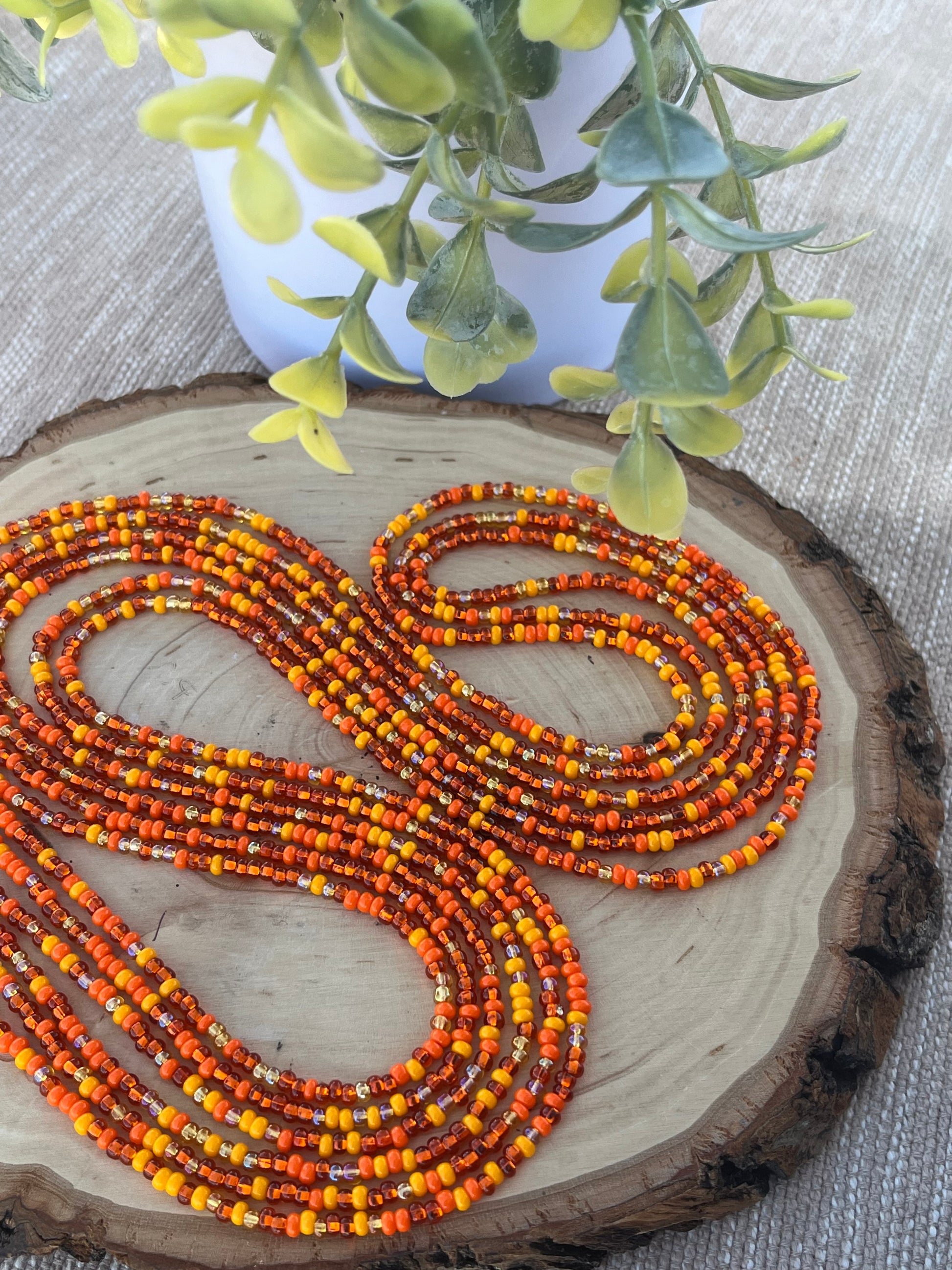 Standard 55" tie on waist bead, for larger size leave a note at checkout. Up to 65" at no additional charge.