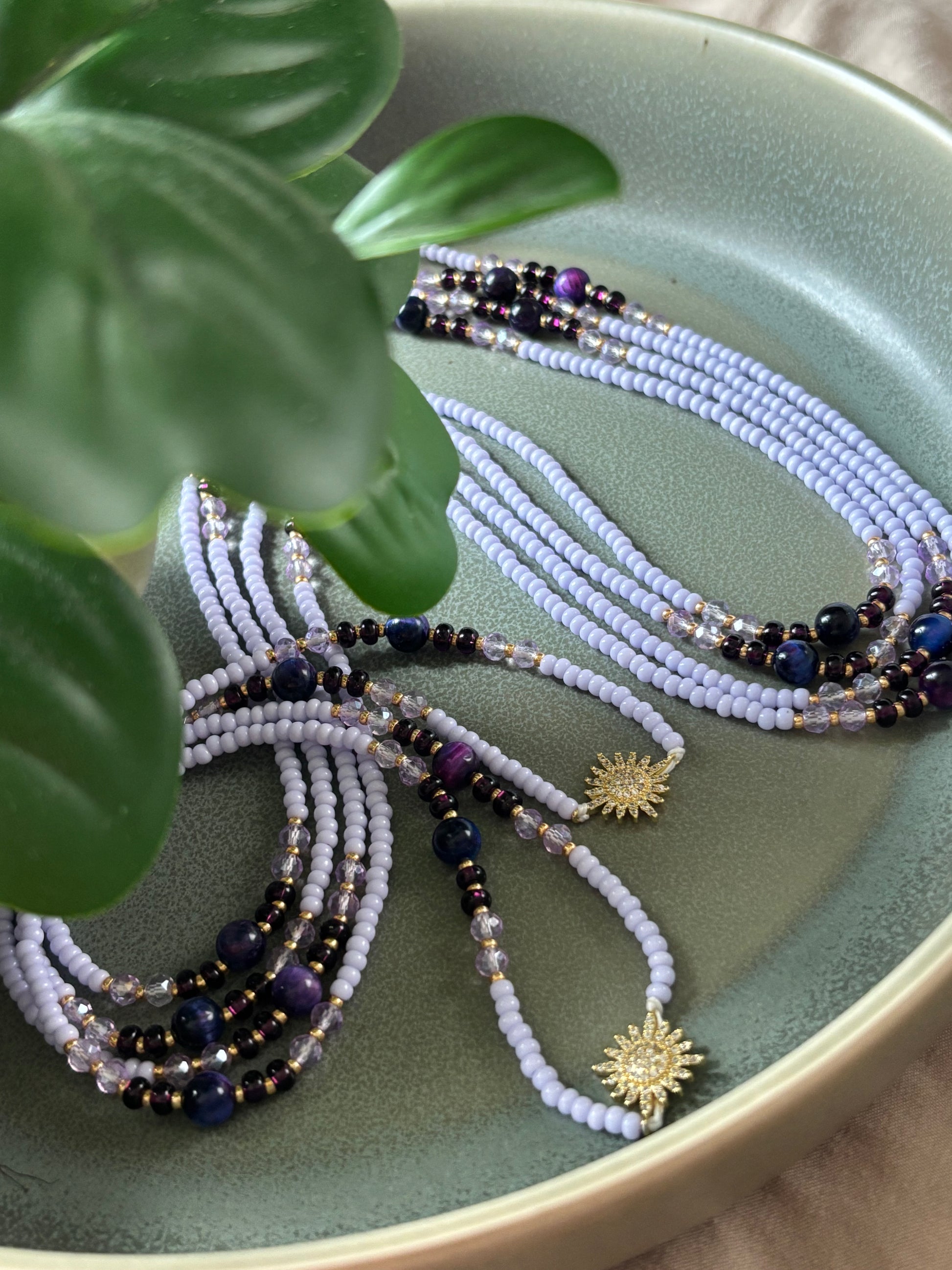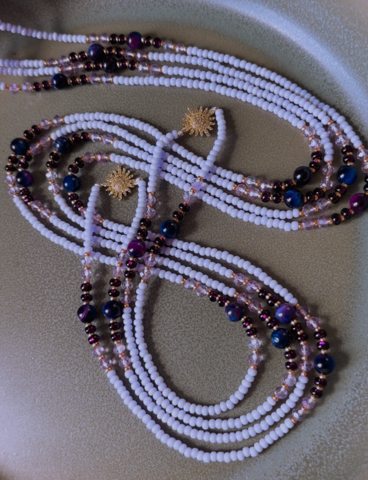 Standard 55" tie on waist bead, for larger size leave a note at checkout. Up to 65" at no additional charge.