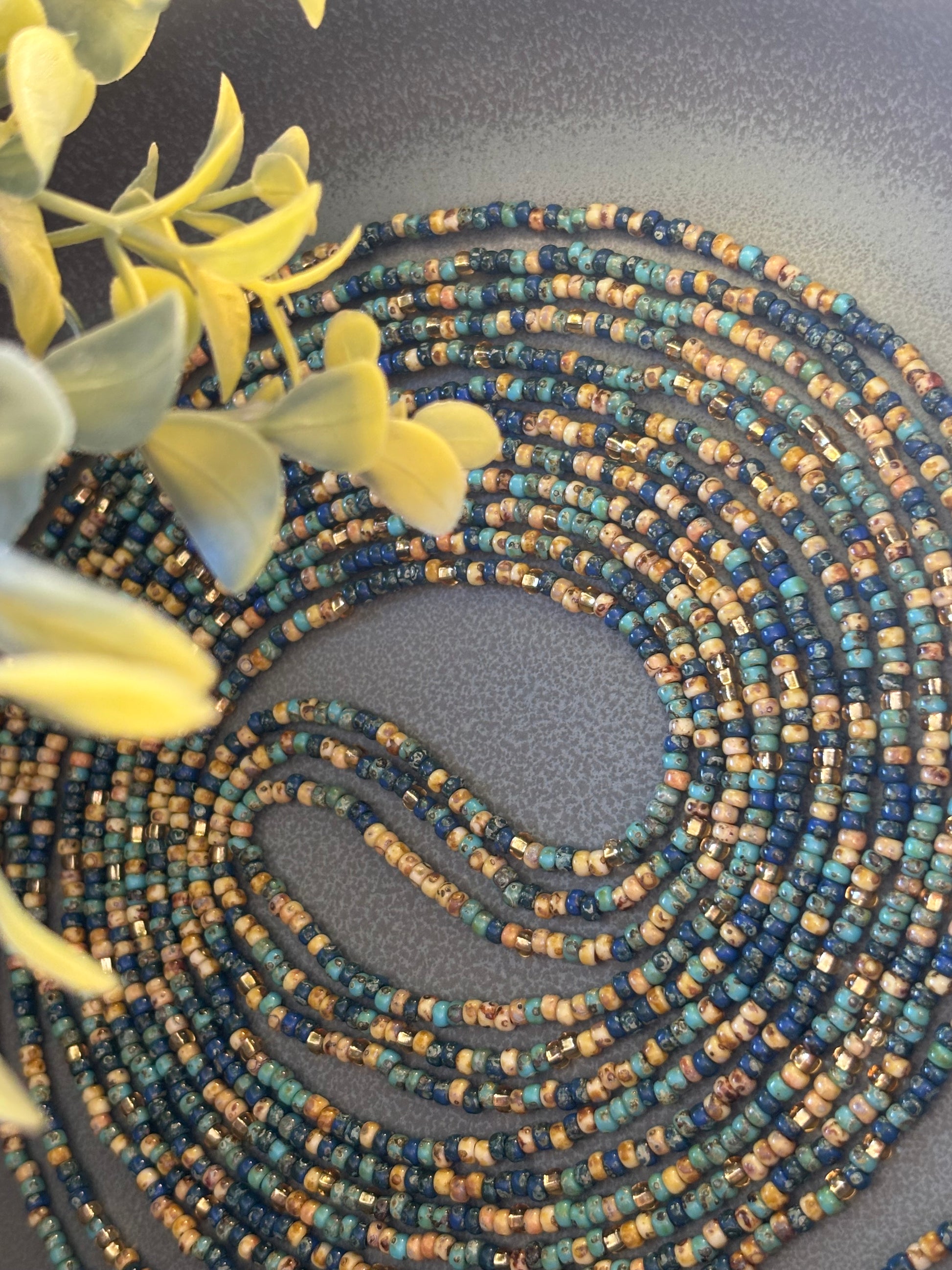 Standard 55" tie on waist bead, for larger size leave a note at checkout. Up to 65" at no additional charge.